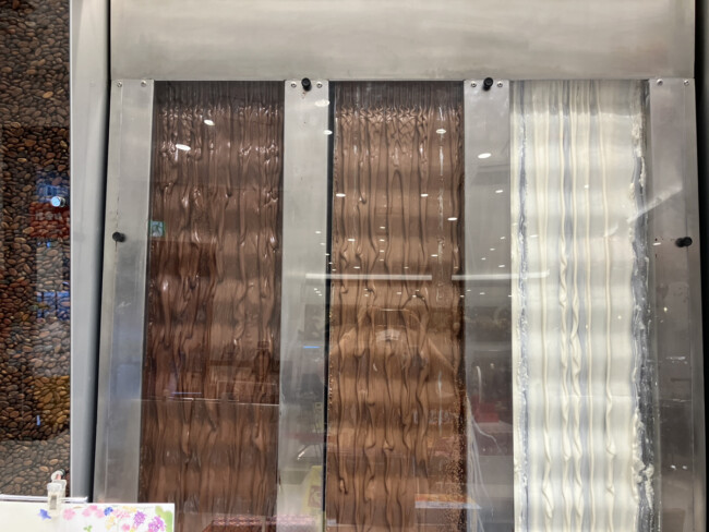 店内では、ガラスの中で3種類のチョコレートの滝が流れていたので思わず撮ってしまいました!