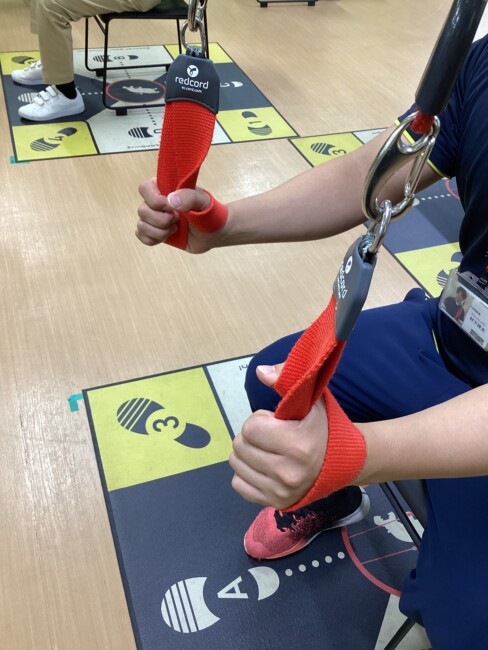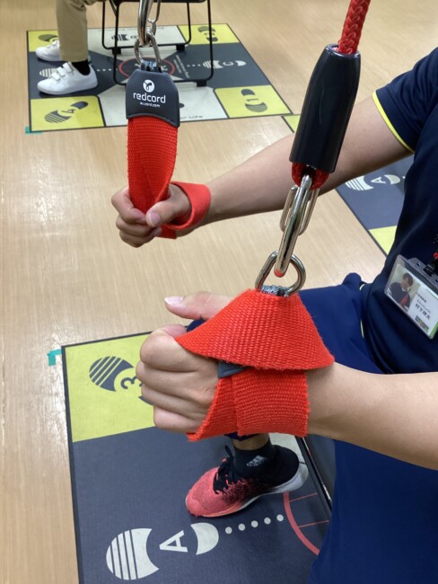 レッドコードに取り組まれる際には自身の身体をしっかりと支えれるように手首までしっかりとストラップを巻いて実施されています。
