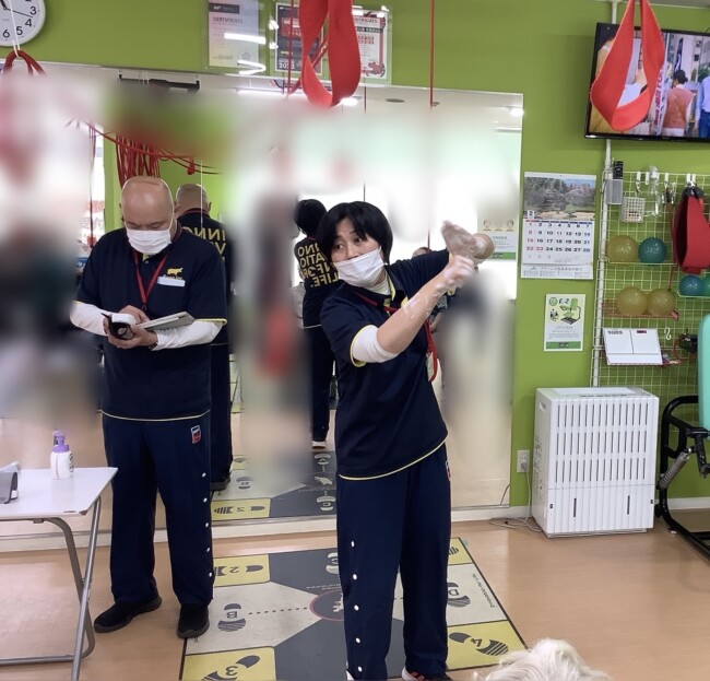看護師さんが前で実践してご利用者様に見て頂きます。