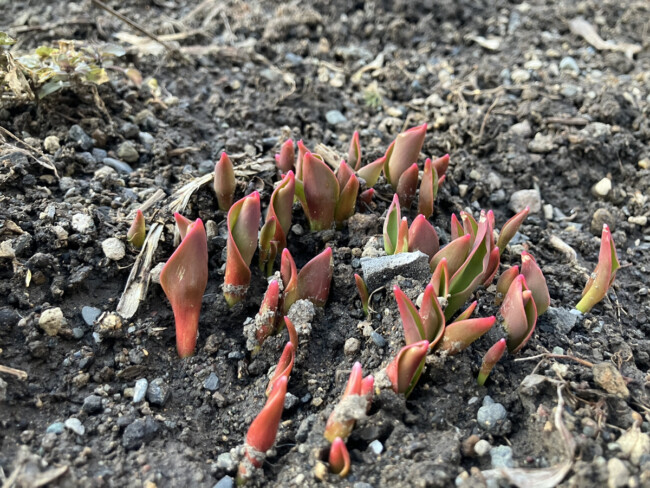 クロッカスとチューリップの芽だそうです。