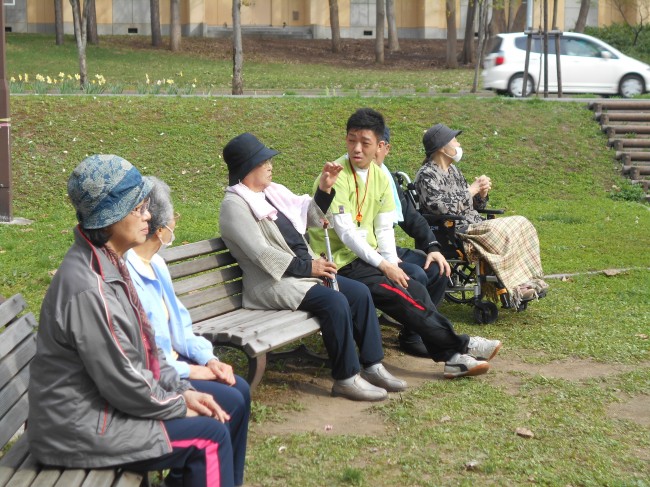 普段あまり歩けない土の上での歩行も良い運動や訓練になります。みんなでお天気の良い日は屋外歩行出来るといいですね。